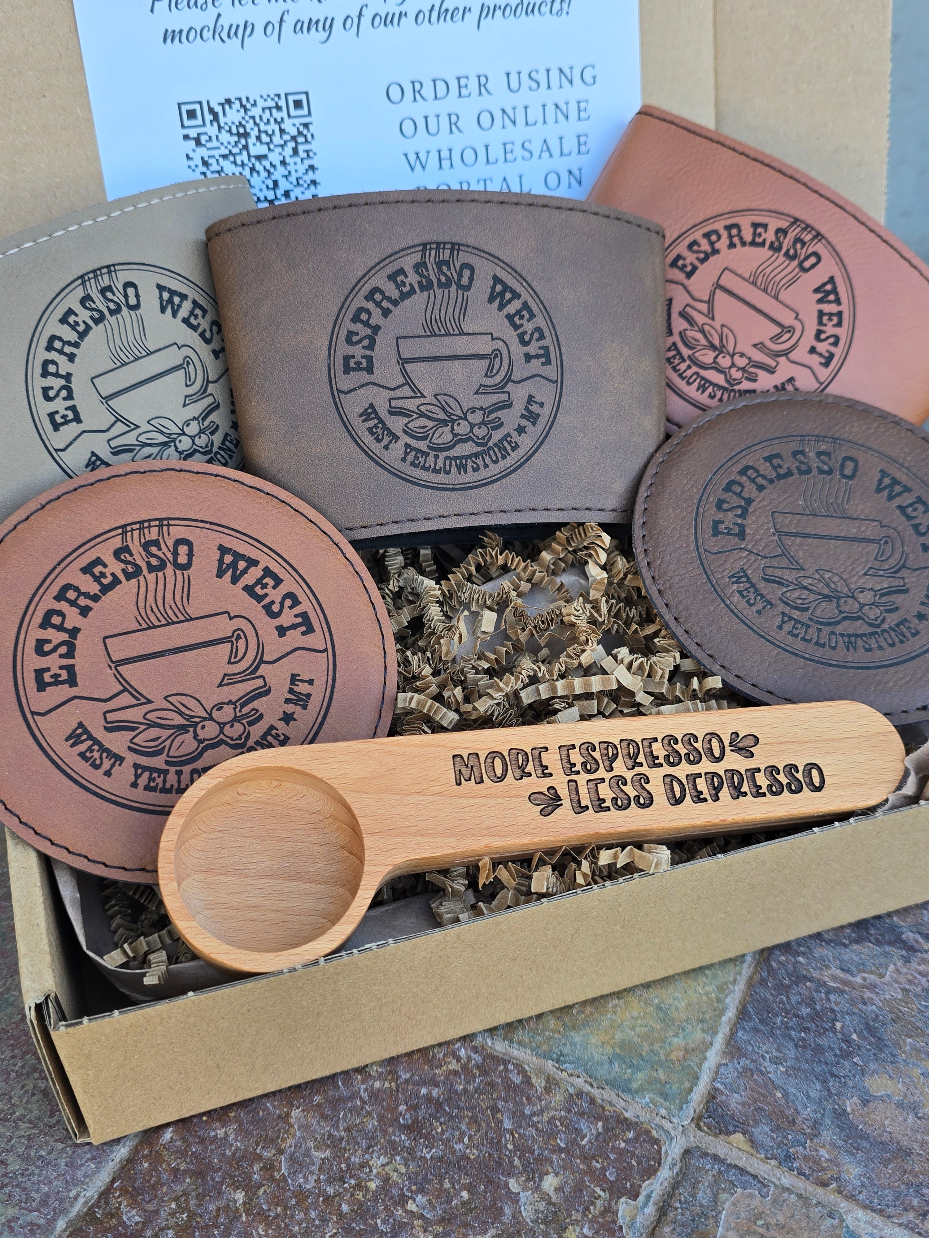 From coasters and drinkware to journals and cabin-inspired décor, our products help boutique lodging and Airbnb hosts add warm, memorable touches that align with their space and brand — designed for repeat use and lasting impressions.