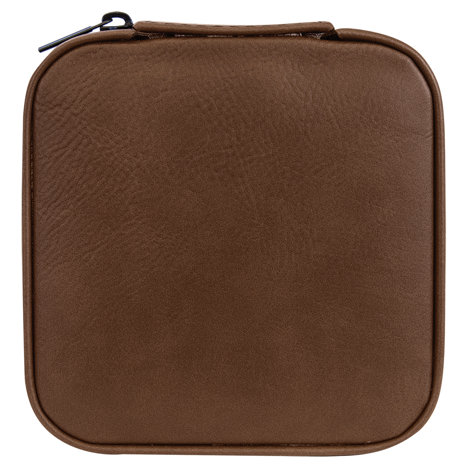 4" X 4" Leatherette Travel Jewelry Boxes are compact for your suitcase or purse. Inside of box as compartments for chains, rings, earrings, or whatever jewelry you want to bring along. Customize the front as they make a perfect custom gift for any occasion. Great for bridesmaid gifts!
